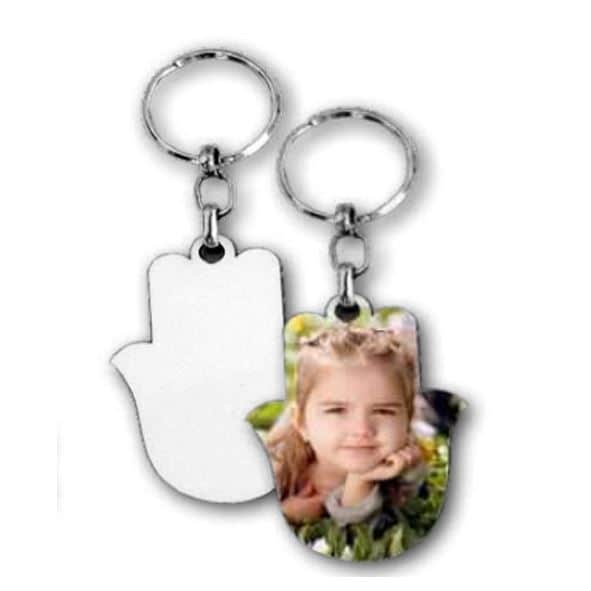 מחזיק מפתחות מעץ בהדפסה ישירה על העץ.