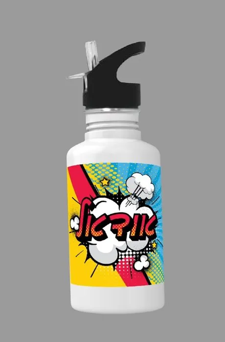 בקבוק שתיה אלומניום עם פיה נשלפת וקשית
