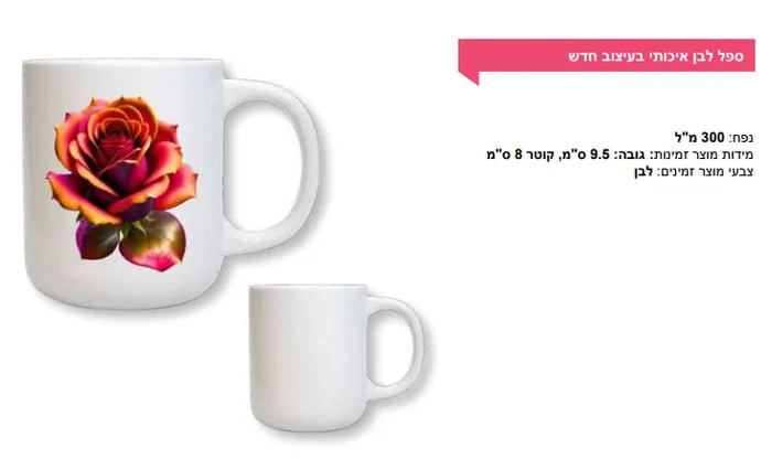 אישית, בין היתר, מתנות, חולצות, ספלים וכיו"ב ("המוצרים"). ניתן לרכוש באתר את המוצרים
