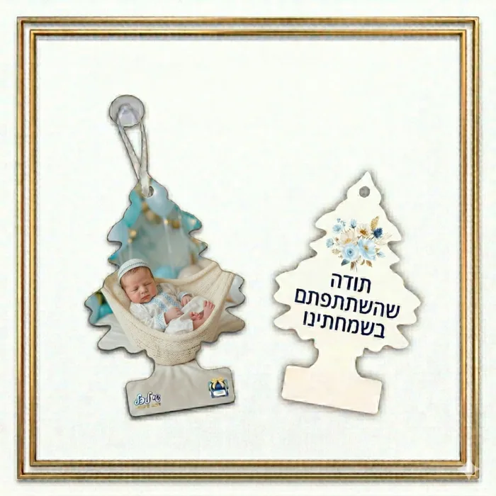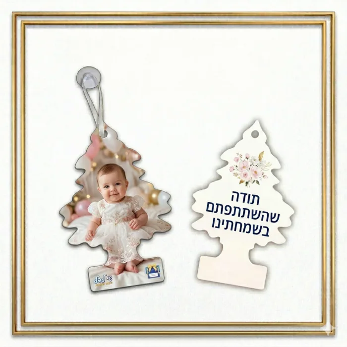מזכרת בלתי נשכחת לכל רכב: תליון "עץ" דקורטיבי עם תמונה אישית והקדשה – המתנה המושלמת לאורחים שלכם או לסוף שנה בגן!